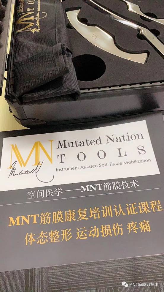Machete Nation(刀客一族) Technolegy简称MNT。MNT师使用的工具其外观酷似冷兵器刀一样所以被称为筋膜刀。筋膜刀的治疗过程行云流水,姿态潇洒,治疗师犹如江湖中的刀客因此而得名刀客一族!MNT技术可广泛运用于运动受限、运动中疼痛、运动控制、肌肉募集以及内上髁、外上髁炎、腕管综合征、颈肩腰腿痛、足底筋膜炎、足跟痛、滑囊炎、肌腱炎等等众多常见病症,并擅长通过平衡筋膜网络的张力来矫正全身体态,其中脊柱侧弯矫正术为MNT的王牌技术。
